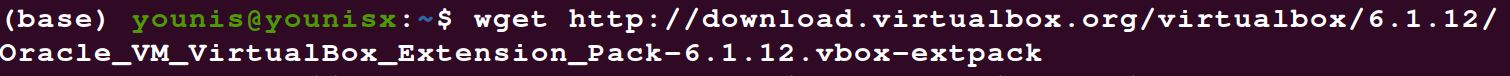 Fifth step: Installation of VirtualBox extension pack: