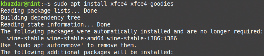 After running the above command, the system might ask for confirmation that if you want to continue the installation or not. Press y to continue; after that, XFCE desktop will be installed on your system along with all dependencies.