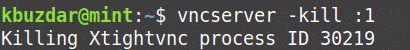 Now we will configure the VNC server. For that, first, kill the VNC session using the following command in Terminal: