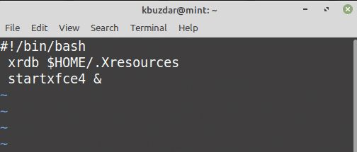 Now edit the ~/.vnc/xstartup file using any text editor. Here, we are using Vim text editor: