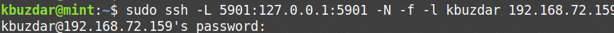 Now we will try to connect to the VNC server through an SSH tunnel as VNC itself is not an encrypted protocol. Issue the following command in Terminal to do so: