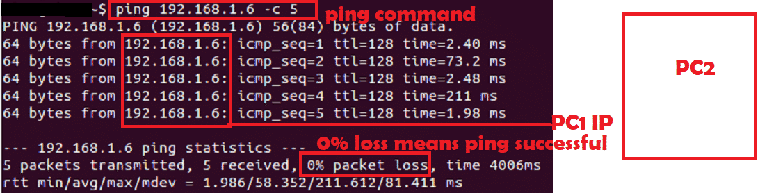 - In our experiment PC1 is windows and PC2 is Linux.