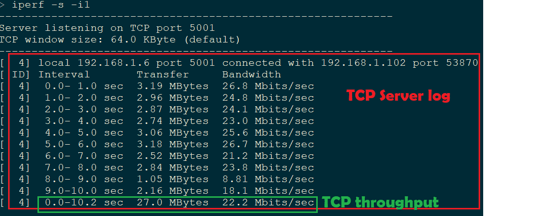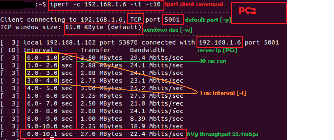 There are many arguments for Iperf command, we will discuss on only important and useful arguments. Below are minimum arguments which can be used to run iperf.