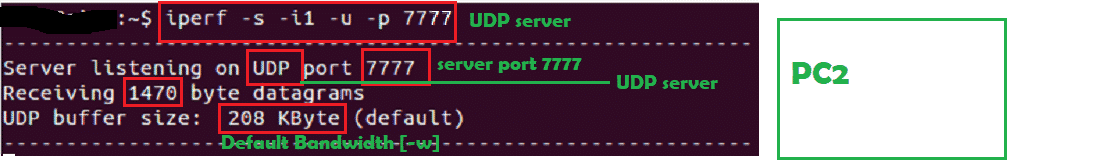 - UDP server in PC1 and UDP client PC2