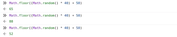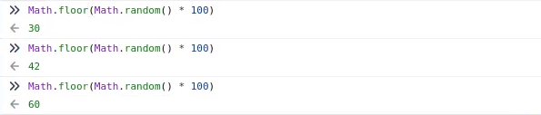 So, if we want to have a whole number and not a float number, ,we can apply a Math.floor() method over Math.random() method, like this: