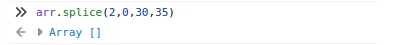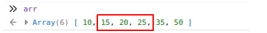 The above command has returned the two elements that were removed, and if we print the original array to the console, we can see that 20 and 30 are no longer in the array and that 15, 20 and 25 have been added.