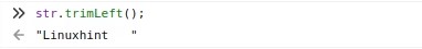 Now, a question arises: what if we want to trim the string from only the left side or the start of the string and vice versa. There is a built-in function for that as well. There are two different trimStart() and trimLeft() functions, but these both do the same task. So, if we want to trim the string from the left side only and want to keep the whitespaces on the right side. We can use the trimStart() or trimtrimLeft() function.