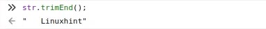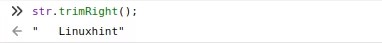 Similarly, if we want to trim the string from the last or the right side only. We can use any of the trimEnd() or trimRight() functions.