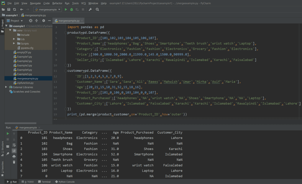 We will explore the uses of merge function, concat function, and different types of joins operations in Pandas python in this article. All examples will be executed through the pycharm editor. Let’s start with the details!