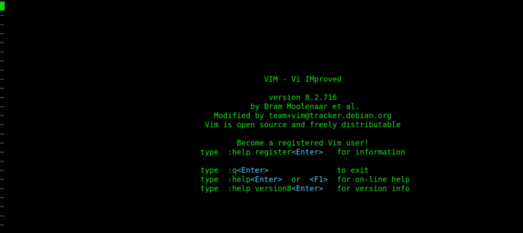 This is a text editor you type filenames into. Type your text like vi(filename). This editor has two modes: command and insert. You are in command mode by default. To enter the insert mode, type i then type Esc to exit. Exit vi by typing ‘:wq’