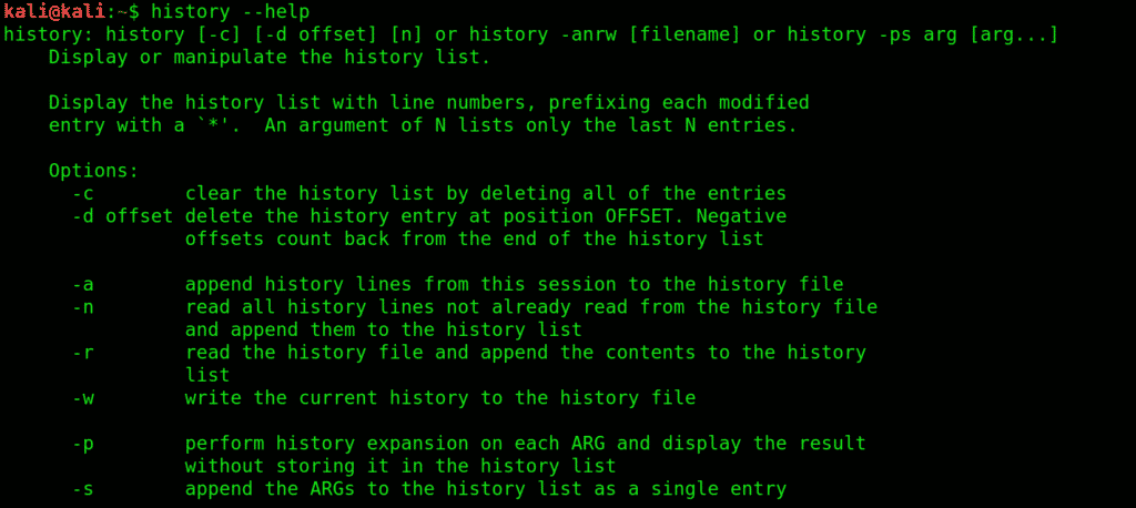 4. history: Get to know all the previously used commands and attributes with history command. It lists all the previous commands you entered (stored in bash shell).