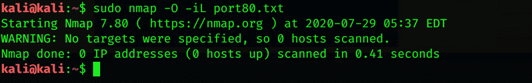 After determining all the IP addresses in the given range, you can get more information by using the –A attribute with the command. You can also obtain a file containing lists of your active host by following the Nmap terminal command below:
