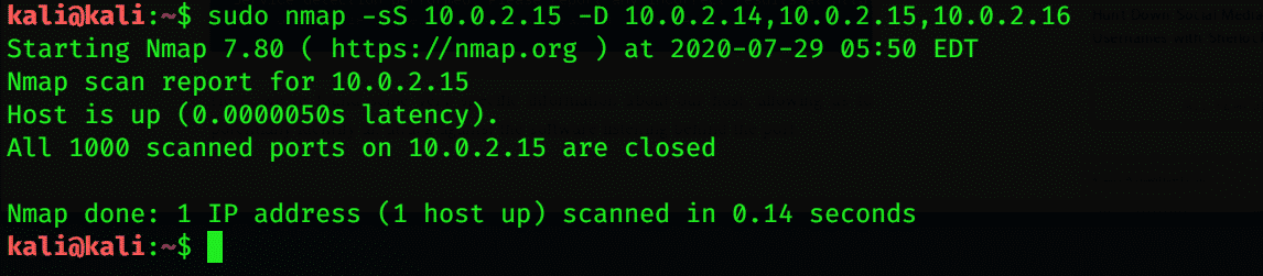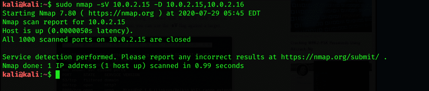Nmap may stop working due to router issues. In this case, you may experience difficulties in scanning the data. You can solve this issue by adding –Pn, which can drop and beep facing by the router. If you do not want to be detected by other people for scanning, then you can add –D.
