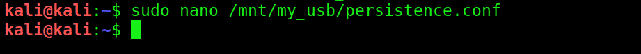 Create a mount called “my_usb.” Follow these commands to confirm your device type. It should be sdb2; otherwise, persistence will not work.