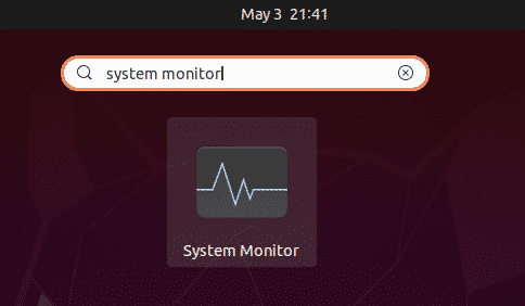 To launch System Monitor, hit the super key and search it using the search bar at the top. When the search result appears as follows, hit Enter to open it.
