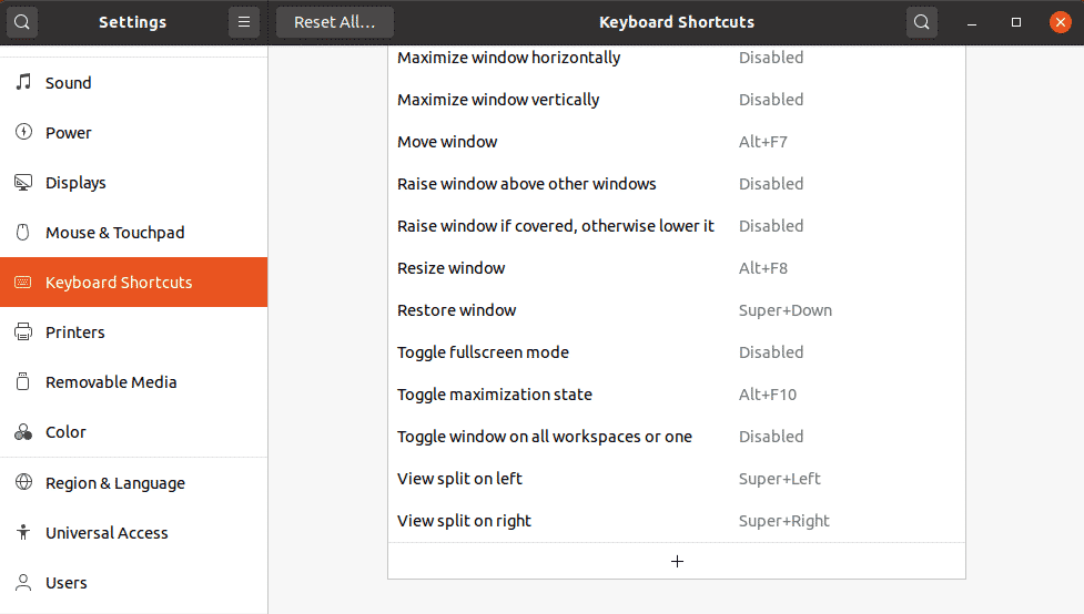 To create a shortcut for xkill, open the Settings utility using the right-click menu from the desktop. Then open the Keyboard Shortcuts tab and click the + icon at the very bottom.