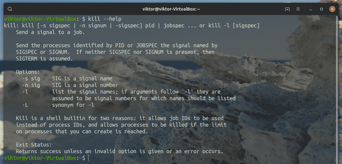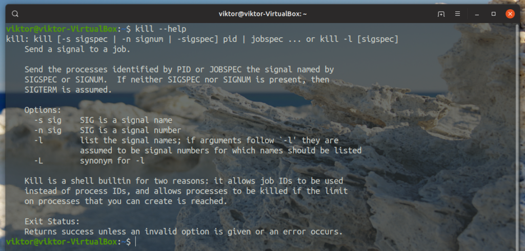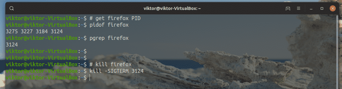 Here, kill will send the default signal SIGTERM to the PID(s). If you wanted to terminate multiple processes, then mention all the PIDs separated by space.