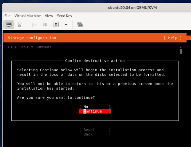 Select Continue and press <Enter>.