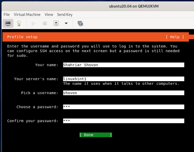 Then, select Done and press <Enter>.