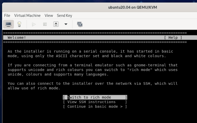 The Ubuntu installer should switch to rich mode.