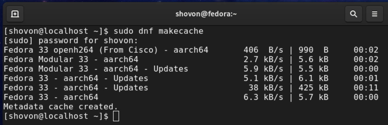 First, update the DNF package repository cache with the following command: