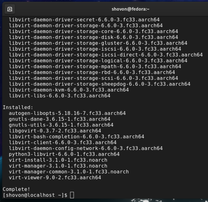 At this point, KVM and all the required tools should be installed.