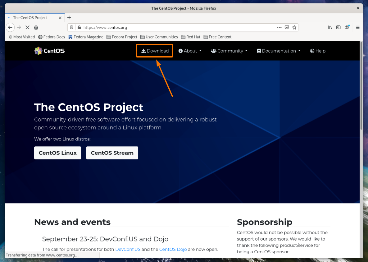To download the ISO installation image of CentOS 8, visit the official website of CentOS from a web browser.