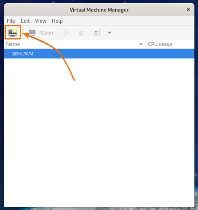 To create a KVM virtual machine, click on the icon() as marked in the screenshot below.