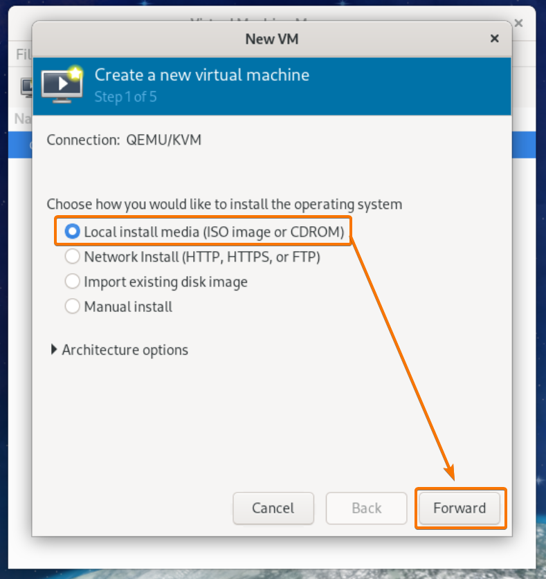 Once the ISO image is downloaded, you can create a Fedora Server 33 KVM virtual machine using the Virtual Machine Manager app.