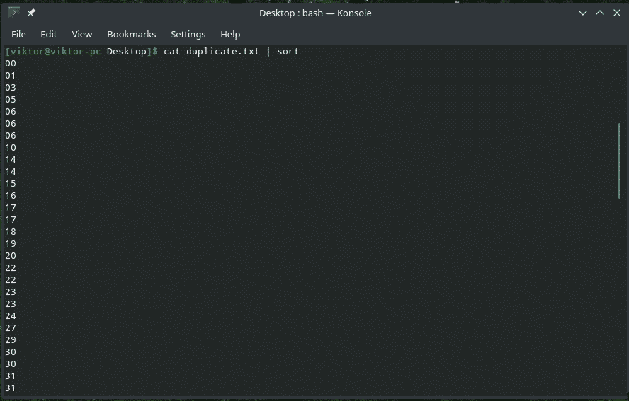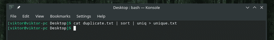 When working with duplicate outputs, it can be pretty annoying. Sometimes, duplicate input can cause serious issues. In this example, let’s cast “uniq” on a stream of text and save it into a separate file.