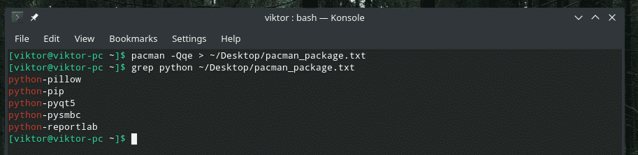 grep python ~/Desktop/pacman_package.txt