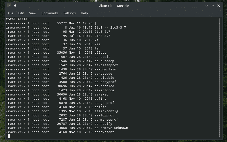 What to do when you’re dealing with a directory with TONS of files in it? It’s pretty annoying to scroll through the entire list. Sure, why not make it more bearable with pipe? In this example, let’s check out the list of all the files in the “/usr/bin” folder.