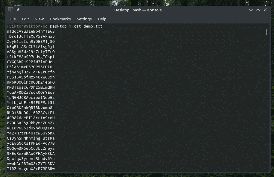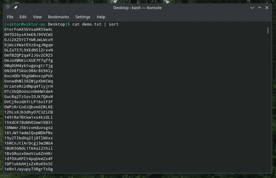 There’s a built-in tool “sort” that will take text input and sort them out. This tool is a real gem if you’re working with something really messy. For example, I got this file full of random strings.