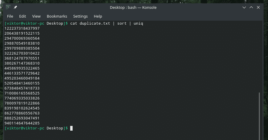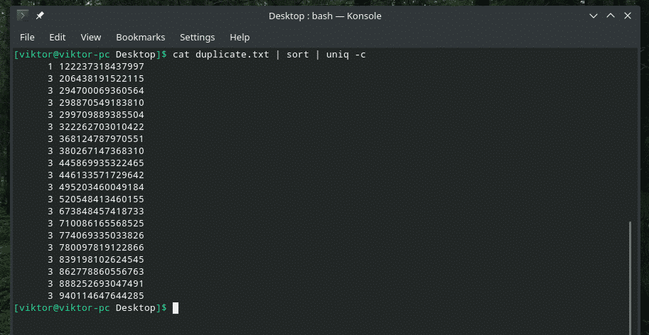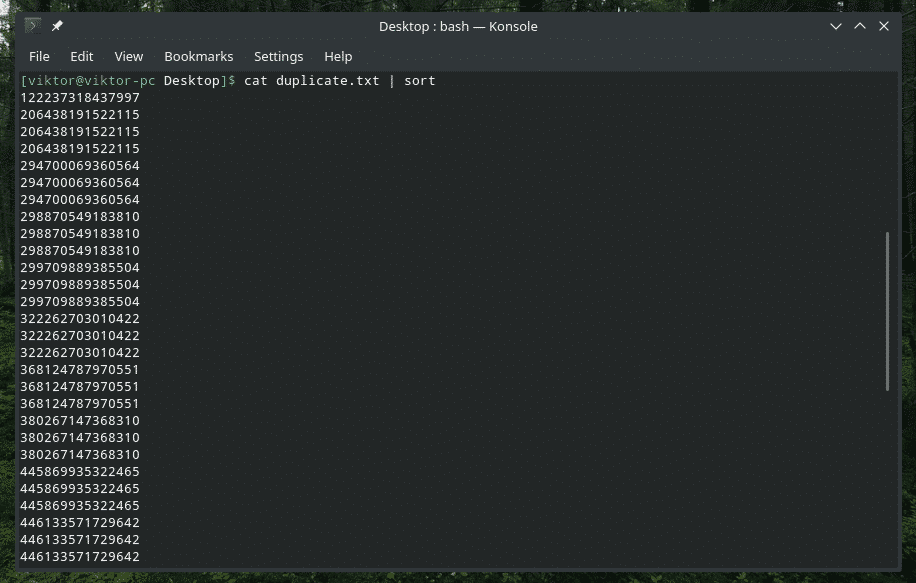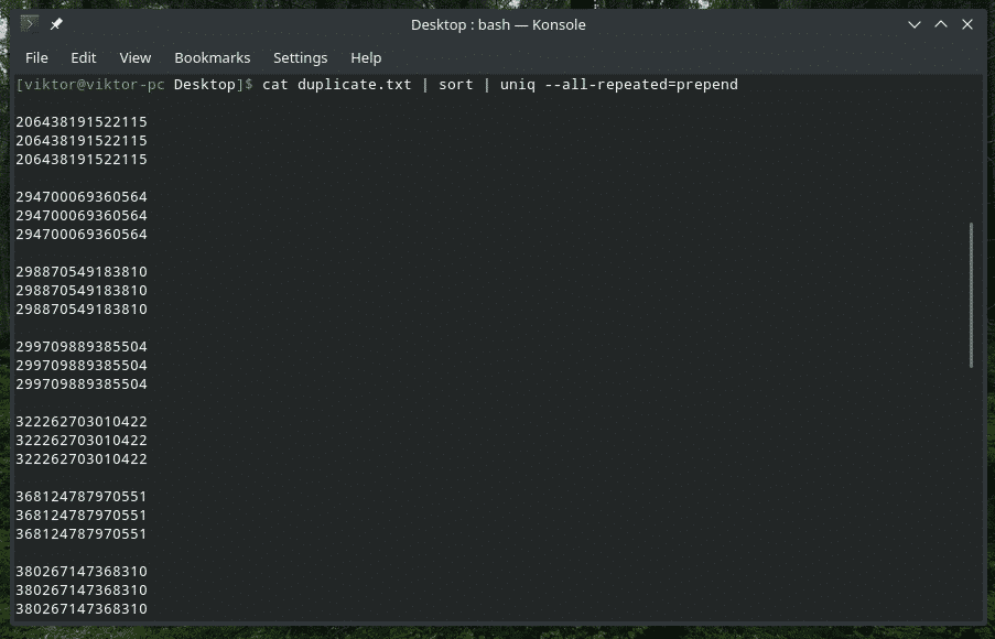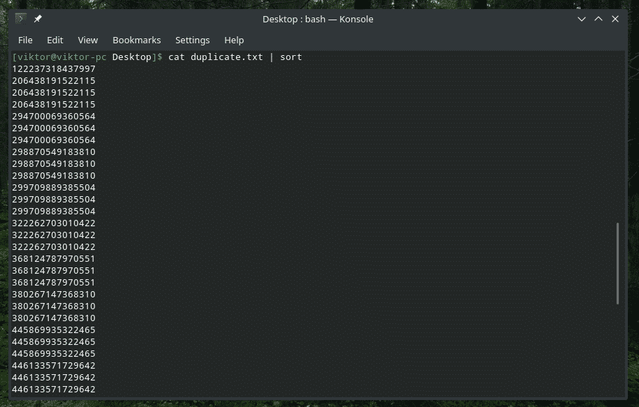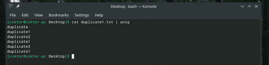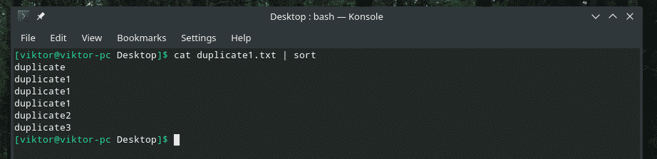 All the duplicate contents are there! That’s why if you’re working with something similar to this, pipe the content through “sort” to make sure that all the contents are sorted and duplicates are adjacent to each other.