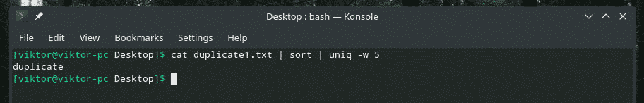 Just like the way we told “uniq” to skip first couple characters, it’s also possible to tell “uniq” to just limit the check within the first couple characters. There’s a dedicated “-w” flag for this purpose.
