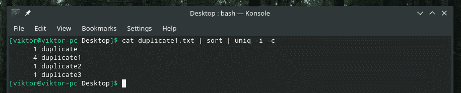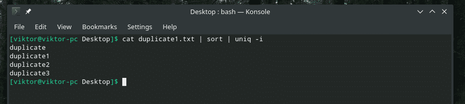 When checking for uniqueness, “uniq” also checks for the case of the characters. In some situations, case sensitivity doesn’t matter, so we can use the flag “-i” to make “uniq” case insensitive.