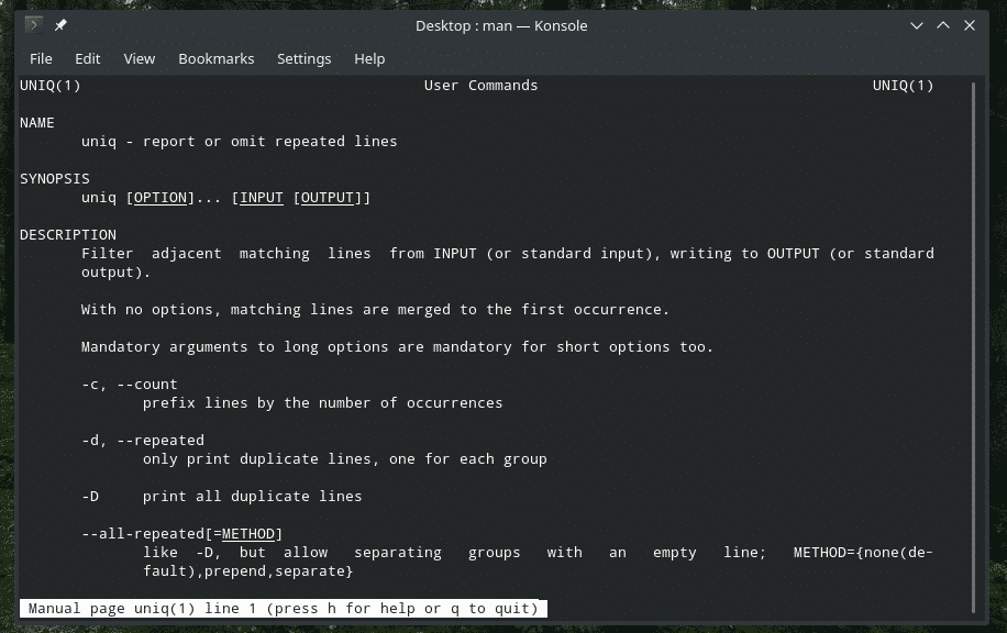 Here’s how the base structure of “uniq” commands looks like.