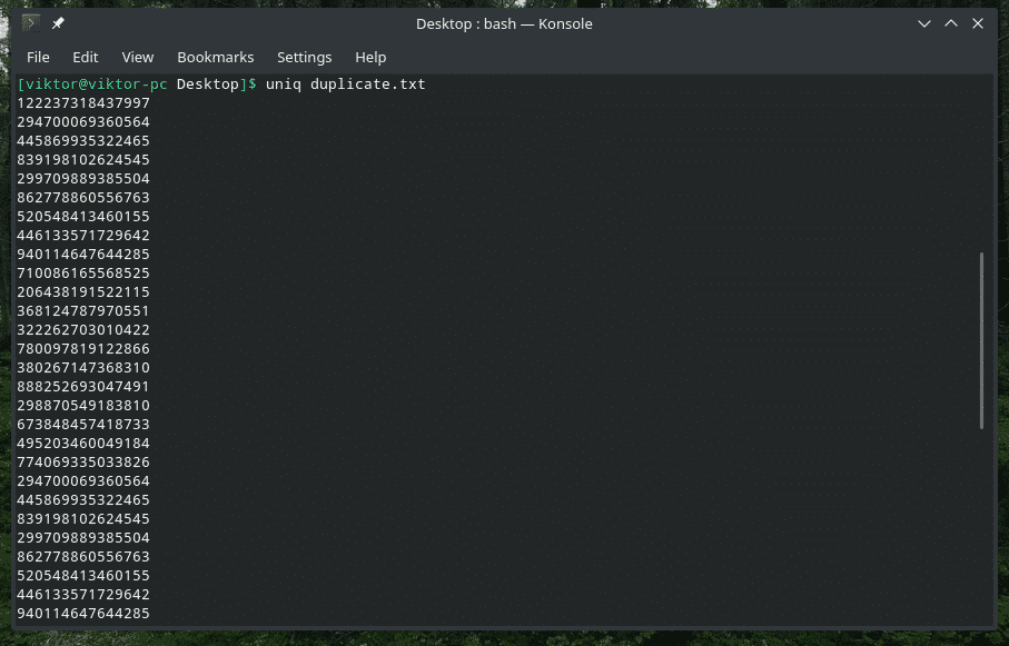 Note: “uniq” will also do its regular job of deleting the duplicate ones.