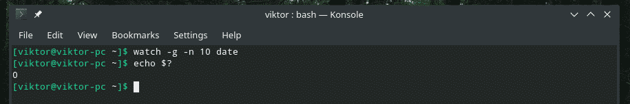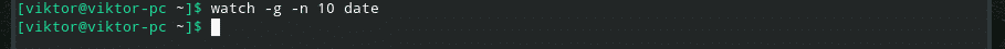 After 10 seconds, “date” command would report a different output. As output change occurred, “watch” exited.