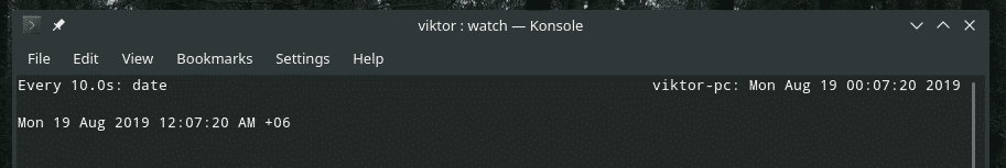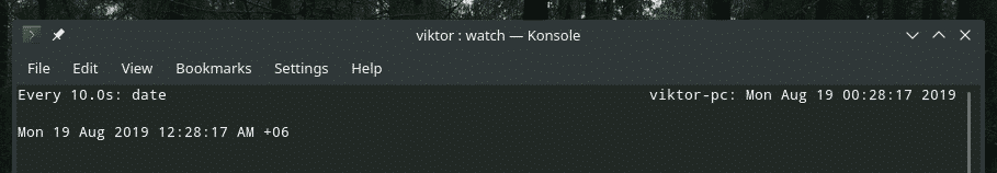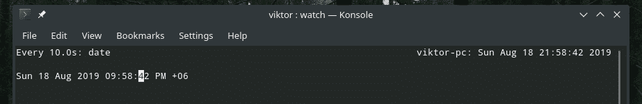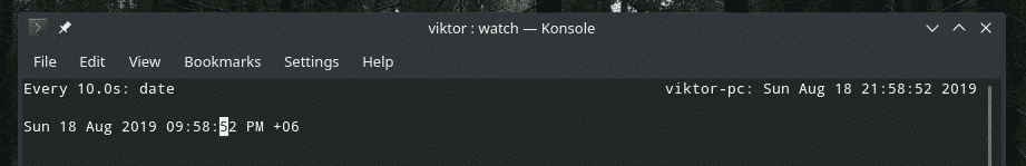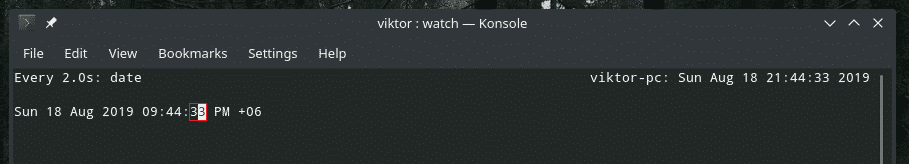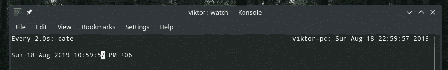 For example, let’s start “watch” with another common command: “date”. This tool prints out the time and date of the instance of running the tool. Learn more on “date”.