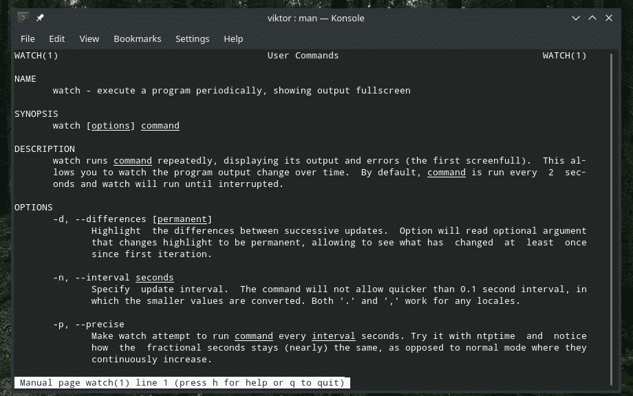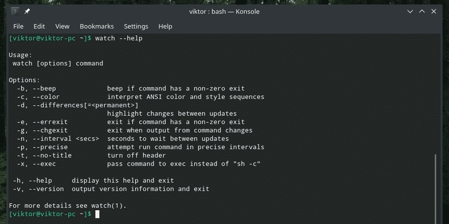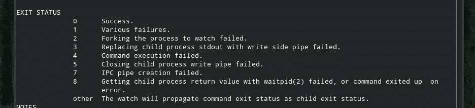 Now, what does this value mean? To learn more about the values, you should check the man page of “watch”.