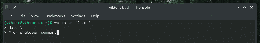 First of all, use the \ sign after “watch” and all its flag, then hit Enter.