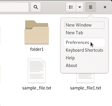 Method 2: You can also set the Preferences of your file manager in a way that it displays files and folders based on a given criterion. Click on the options button from the top bar as follows: