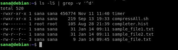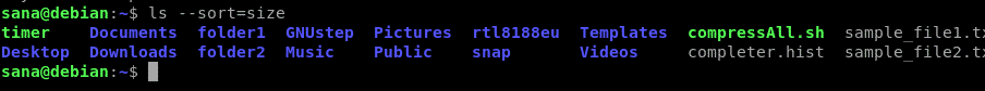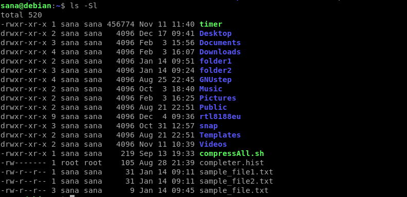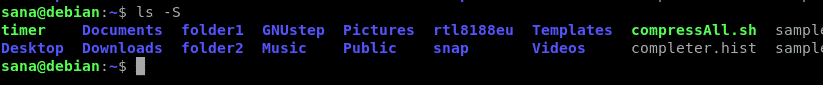 You can then use the -S option as follows to sort the files on the basis of size, largest first: