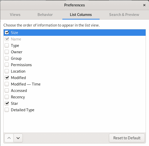 Then, click on the Preferences option that will open the Preferences view with the ‘Views’ tab open. Click on the List Columns tab that lets you set the order of information that appears in the list view of the File Manager.