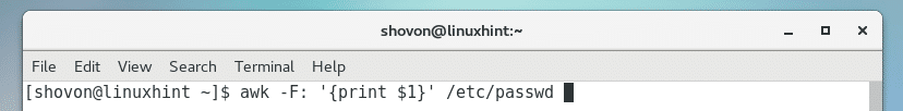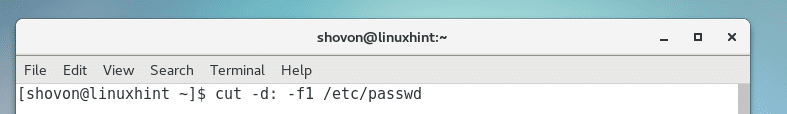 The /etc/passwd file has a lot of information. If you want to extract only the username from the colon(:) separated list, then you can use awk or cut command to do that.