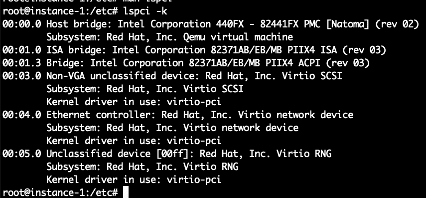I have created a Ubuntu 19.04 instance on Google cloud and will now run the lspci command and see what happens.