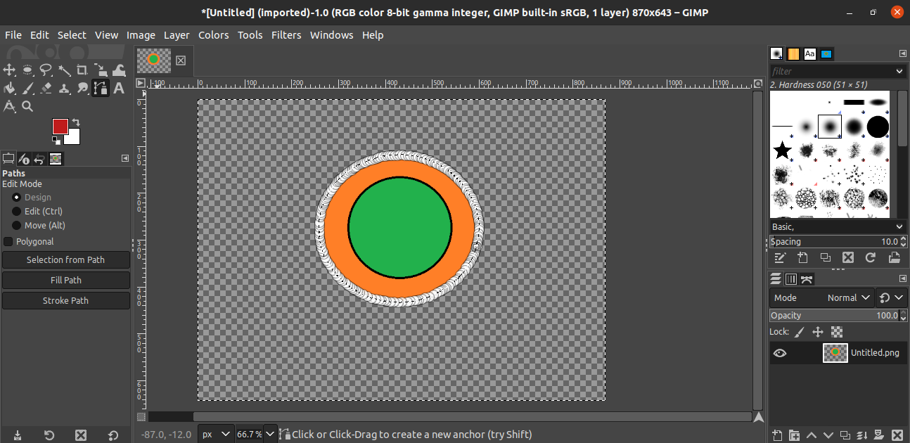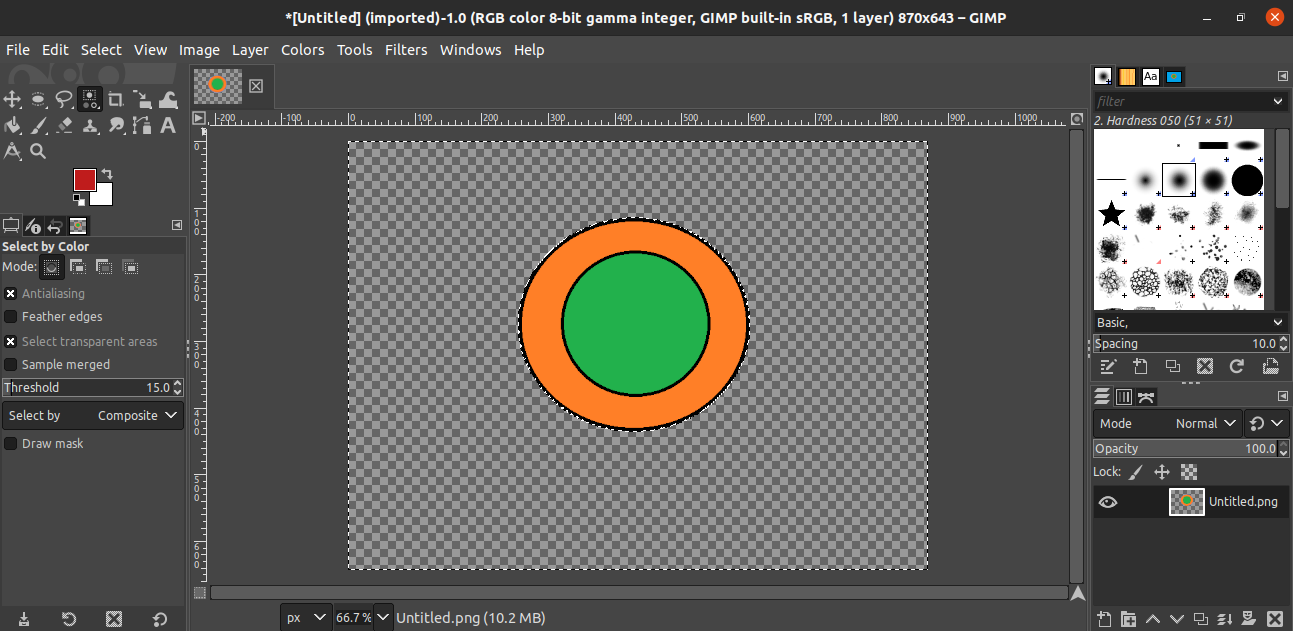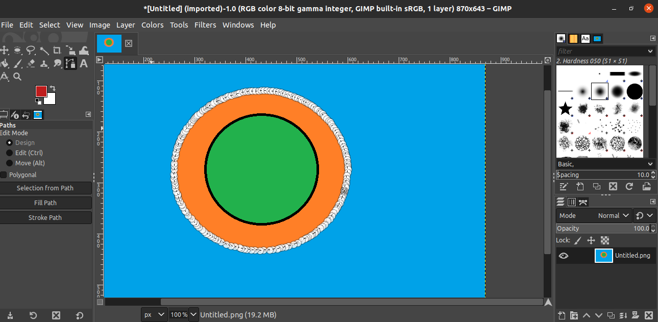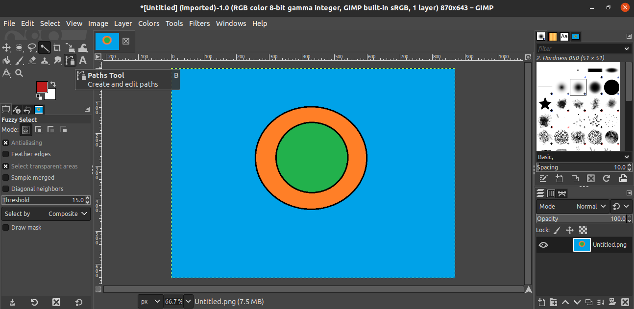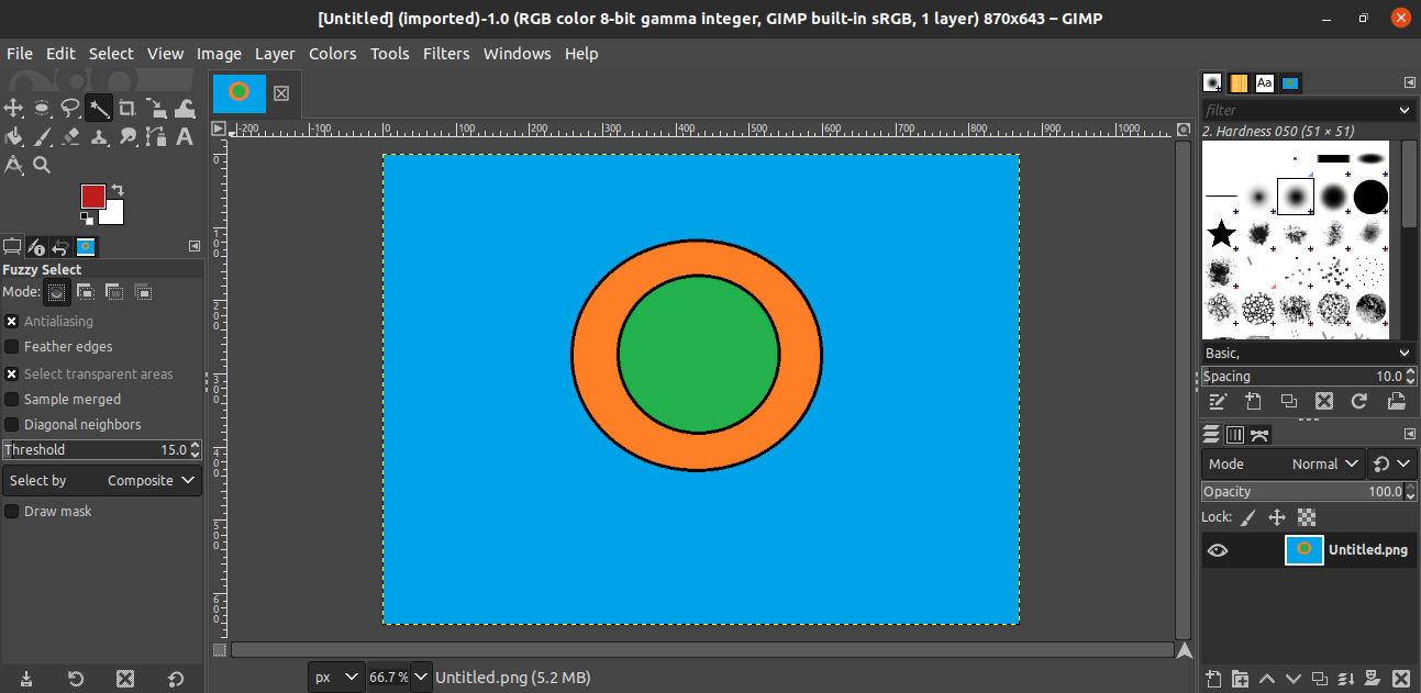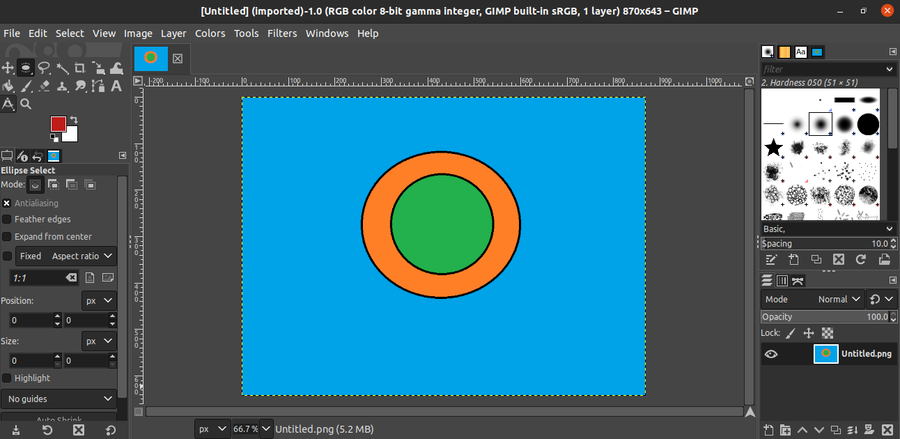 For this demonstration, I have created the following image. The image is quite simplistic. It contains two circles, one inside the other, on top of a flat-colored background.