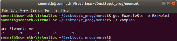 In Example5.c, we have initialized the integer array by 0. All bits of the binary representation of -1 is 1. So the array is initialized by -1.