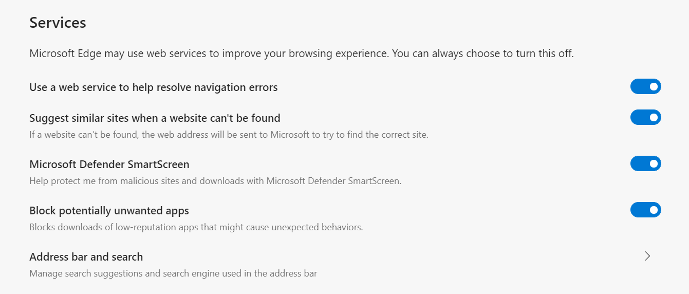 Edge also has a crapware blocker that prevents applications that may harm your computer (e.g., adware, spyware) from being downloaded.